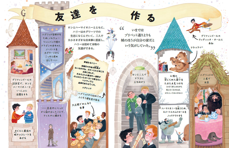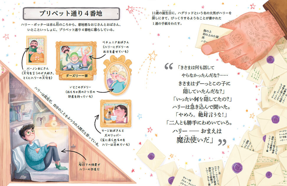 あの人やこの人のあれこれを丸ごと大紹介!魔法といたずらがぎっしり詰つまったイラスト図鑑です。